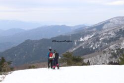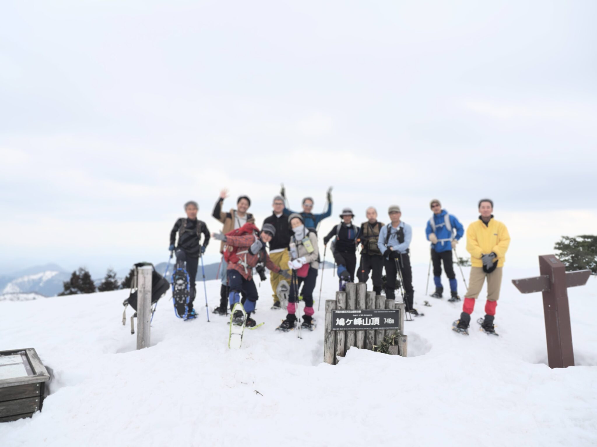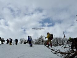 肝心な山頂に到着した時には運悪く雲に覆われてしまいましたが、その前後は青空の下で過ごすことができ残雪に覆われた丹後・中丹の風景を見ていただけたりと恵まれたスノーハイクデー。